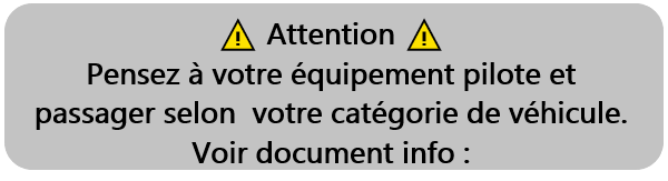 Possibilité d’un 2ème pilote sur le même véhicule : 30€ (un seul 2e pilote autorisé par voiture)
